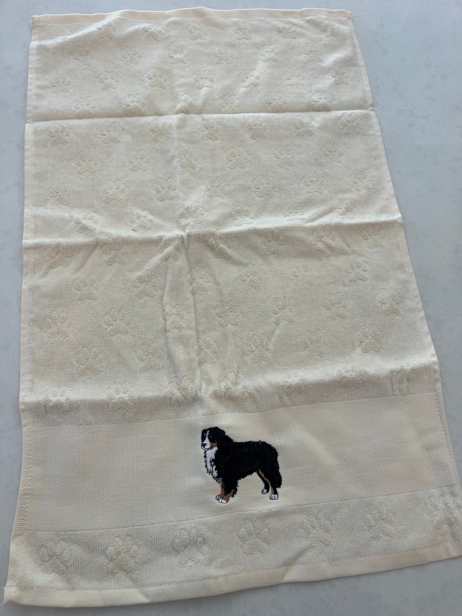 Meet the Bernese Mountain Dog Embroidered Towel – the perfect, practical partner for our festive drool bibs!